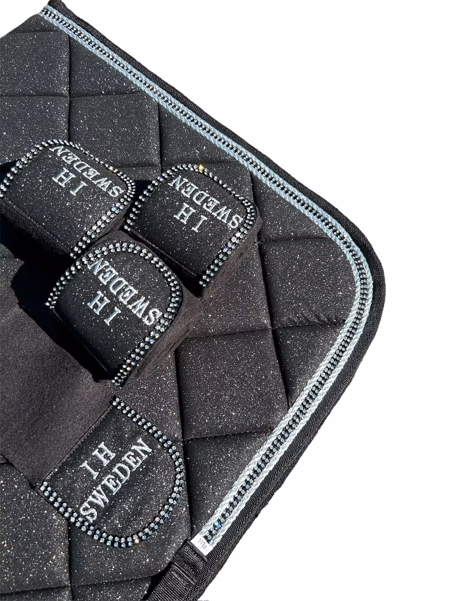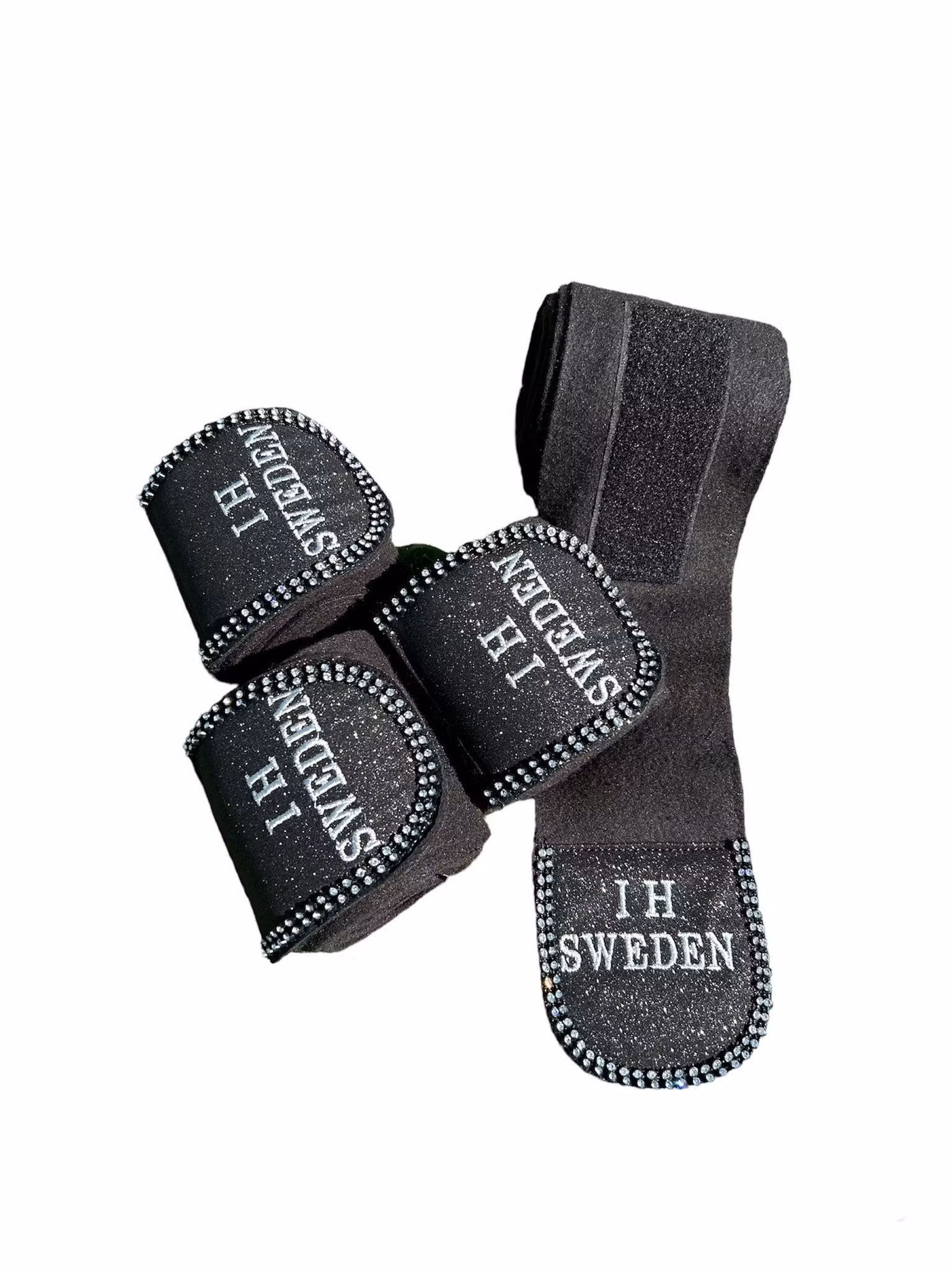 IH collektion i färgen svart.Benlindor i svart fleece.Glitter och dubbel strasskant.