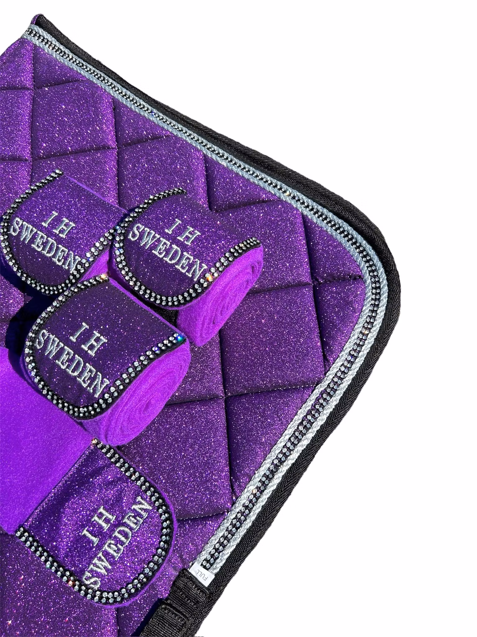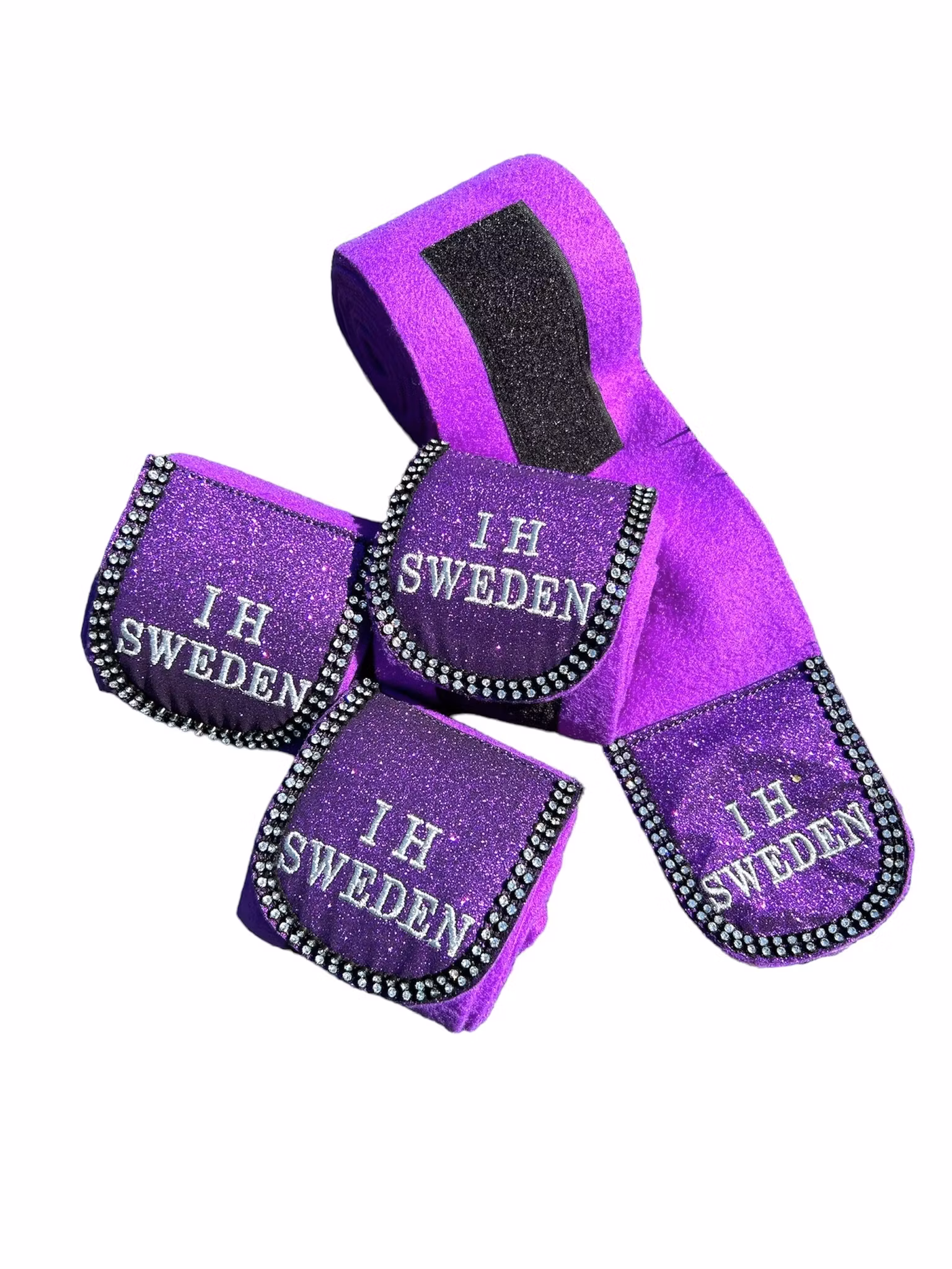 IH collektion i färgen lilaBenlindor i lila fleece.Lilaglitter och dubbel strassrad.