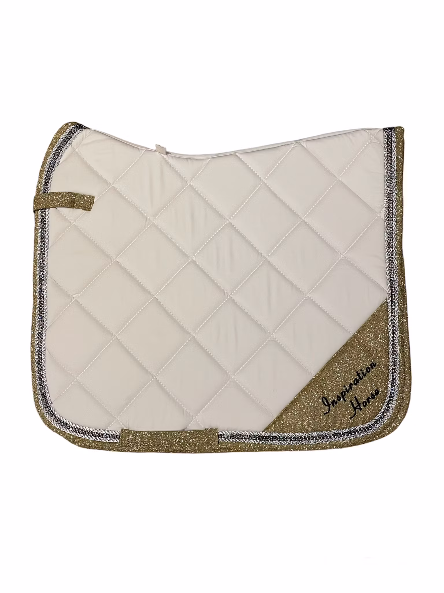 Stilfullt IH dressyrschabrak i guldglitter och strass.