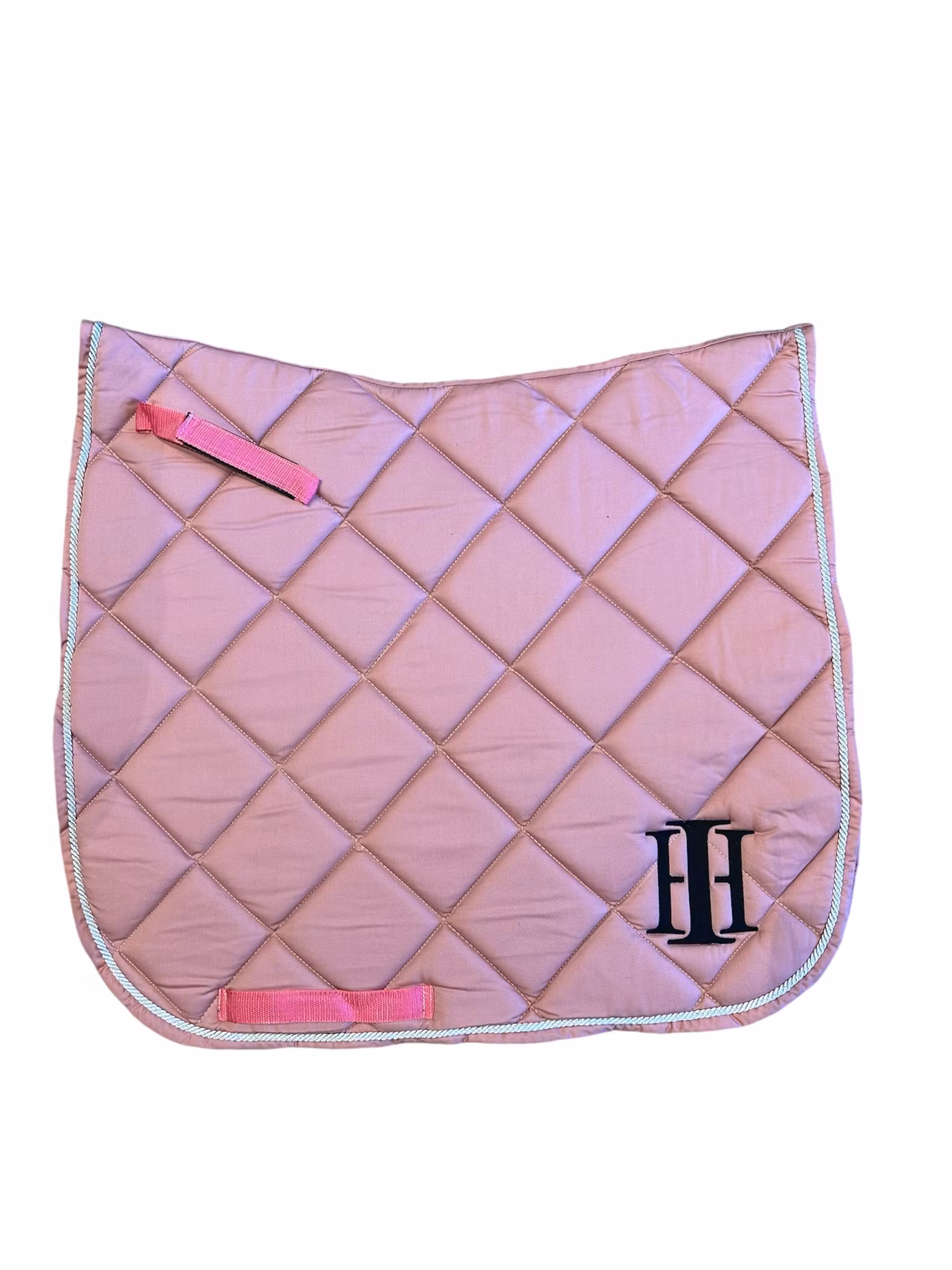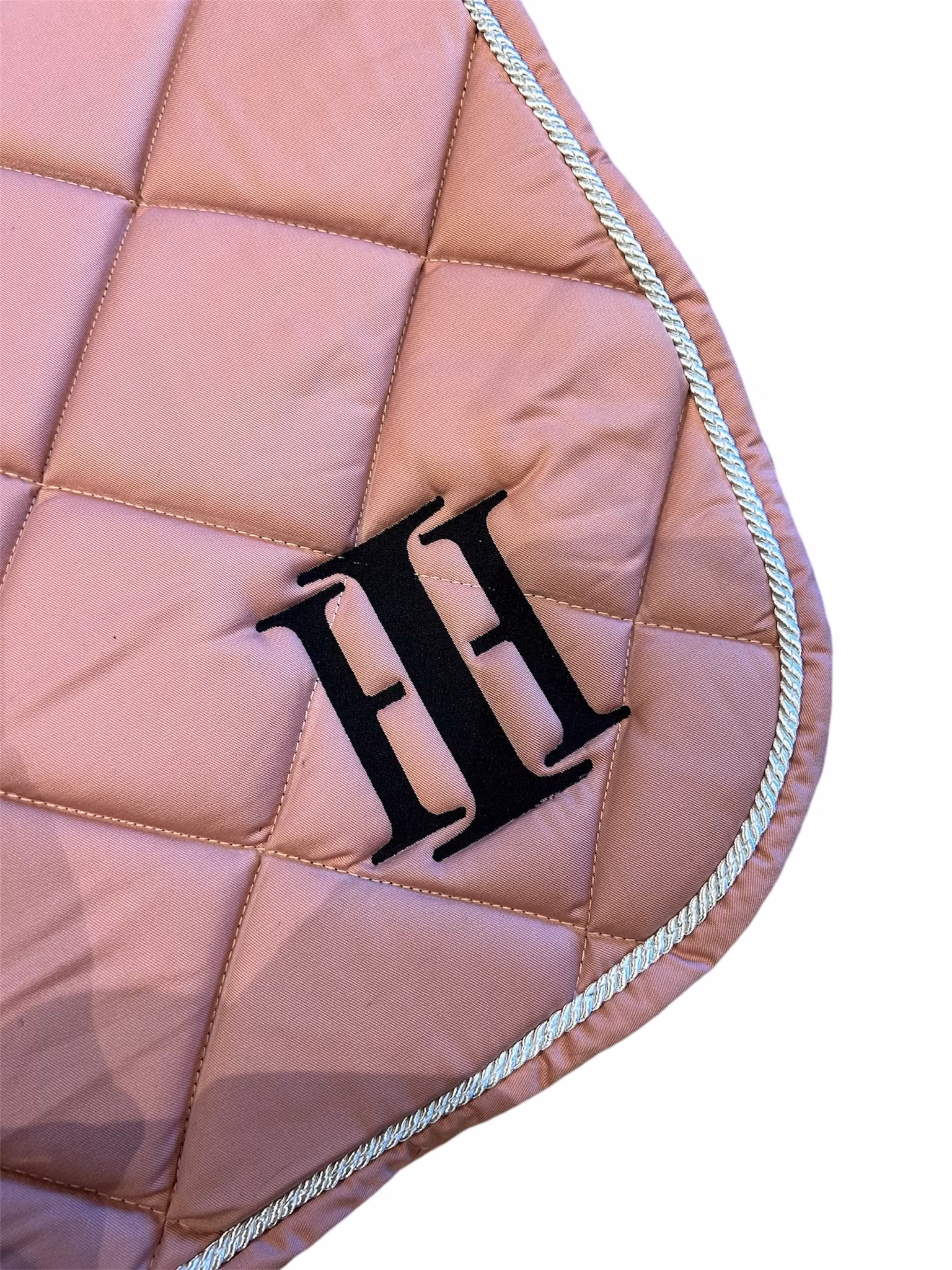 Schabrak i pastellrosa med vita och svarta detaljer.IH logga.