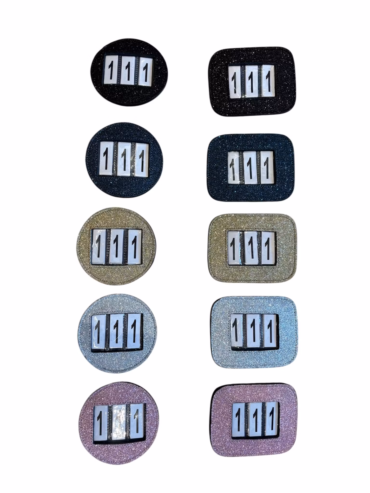 Nummerlappar i glitter 5 olika färger . 2 formval.